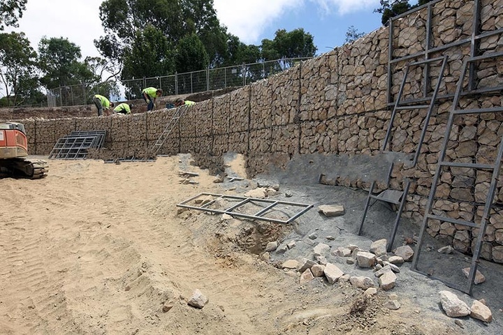 石籠網(wǎng)是由高抗腐蝕、高強(qiáng)度、具有延展性的低碳鋼絲或者包覆PVC的以上鋼絲使用機(jī)械編織而成,根據(jù)ASTM A 975和EN10223標(biāo)準(zhǔn),所使用的低碳鋼絲直徑根據(jù)工程設(shè)計要求而不同。一般介于2.0-4.0mm之間,鋼絲的抗拉強(qiáng)度不少于38kg/m2,金屬鍍層重量一般高于245g/m2石籠網(wǎng)片的邊緣線直徑一般要大于網(wǎng)線直徑。