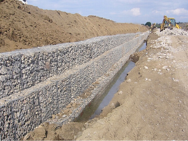 河堤,這樣減輕對河堤的損害。 在網(wǎng)箱上面,鋪撒一層土,可以生長草;自然也會沉降塵土,自然生長雜草等。 石籠網(wǎng)也可以用于引導(dǎo)河流水,河流一般會順著固有的河槽流動,河道可能有自然形成的彎曲的河道,如果發(fā)生洪水,水量巨大,水流湍急,水流會在慣性下,趨于直向流動,會猛烈地沖擊原來的河槽和堤壩,有可能使河流改道,那樣將造成巨大的災(zāi)難。