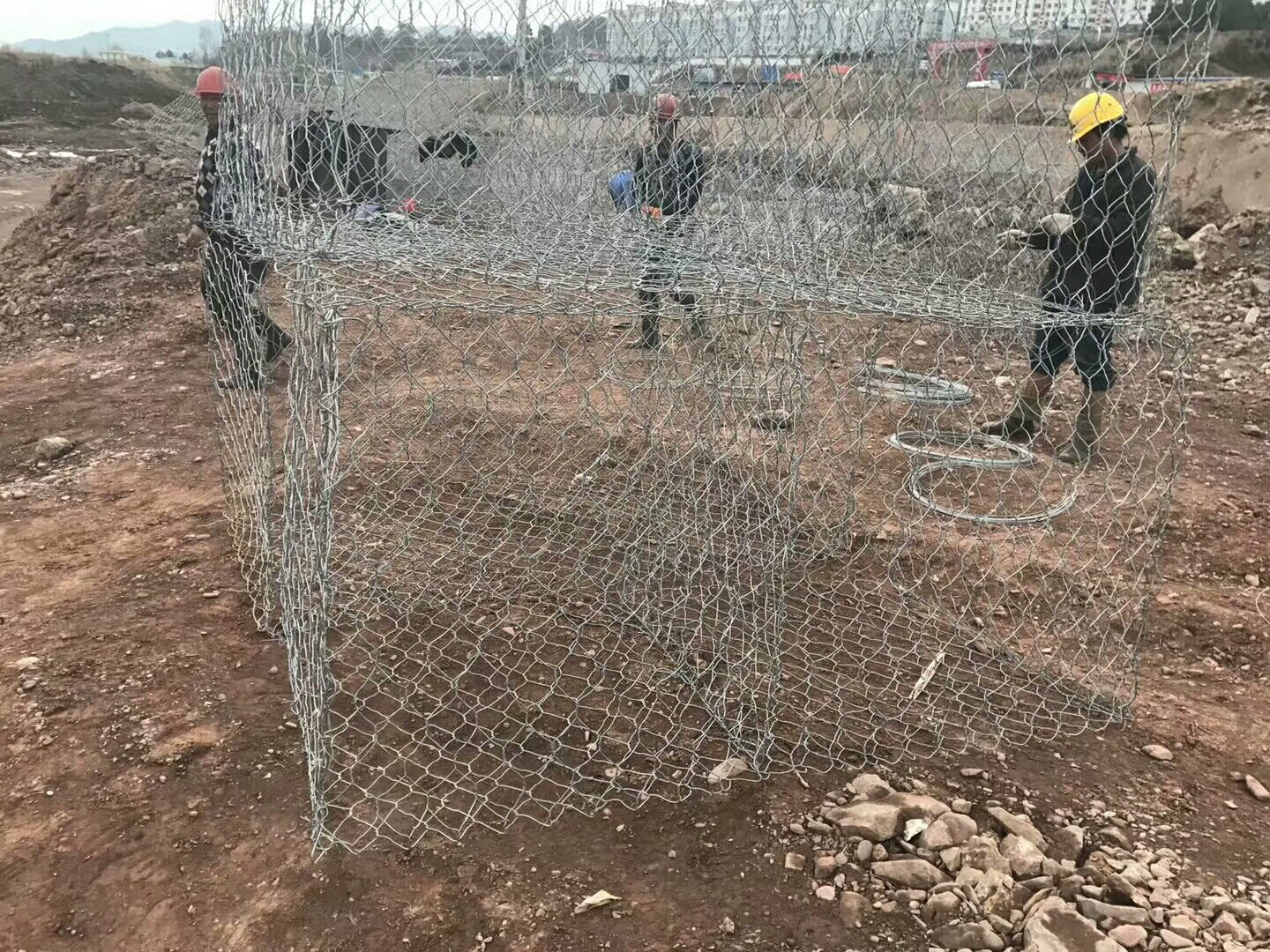賓格網(wǎng)防護(hù)體可按設(shè)計(jì)要求,進(jìn)行工廠化生產(chǎn)制作出半成品,施工現(xiàn)場僅需組裝定型,灌充填料,操作簡便,尤其是受氣候因素干擾小,適宜于機(jī)械化施工。