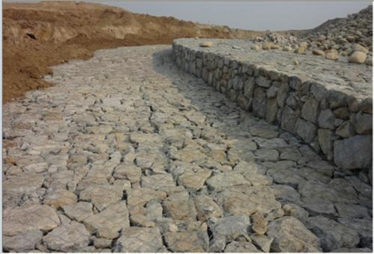 雷諾護(hù)墊是指由機(jī)編雙絞合六邊形金屬網(wǎng)面構(gòu)成的厚度遠(yuǎn)小于長度和寬度的墊形工程構(gòu)件,其中裝入塊石等填充料后連接成一體,成為主要用于水利堤防、岸坡、海曼等的防 沖刷結(jié)構(gòu),具有柔性、對(duì)地基適應(yīng)性的優(yōu)點(diǎn)。