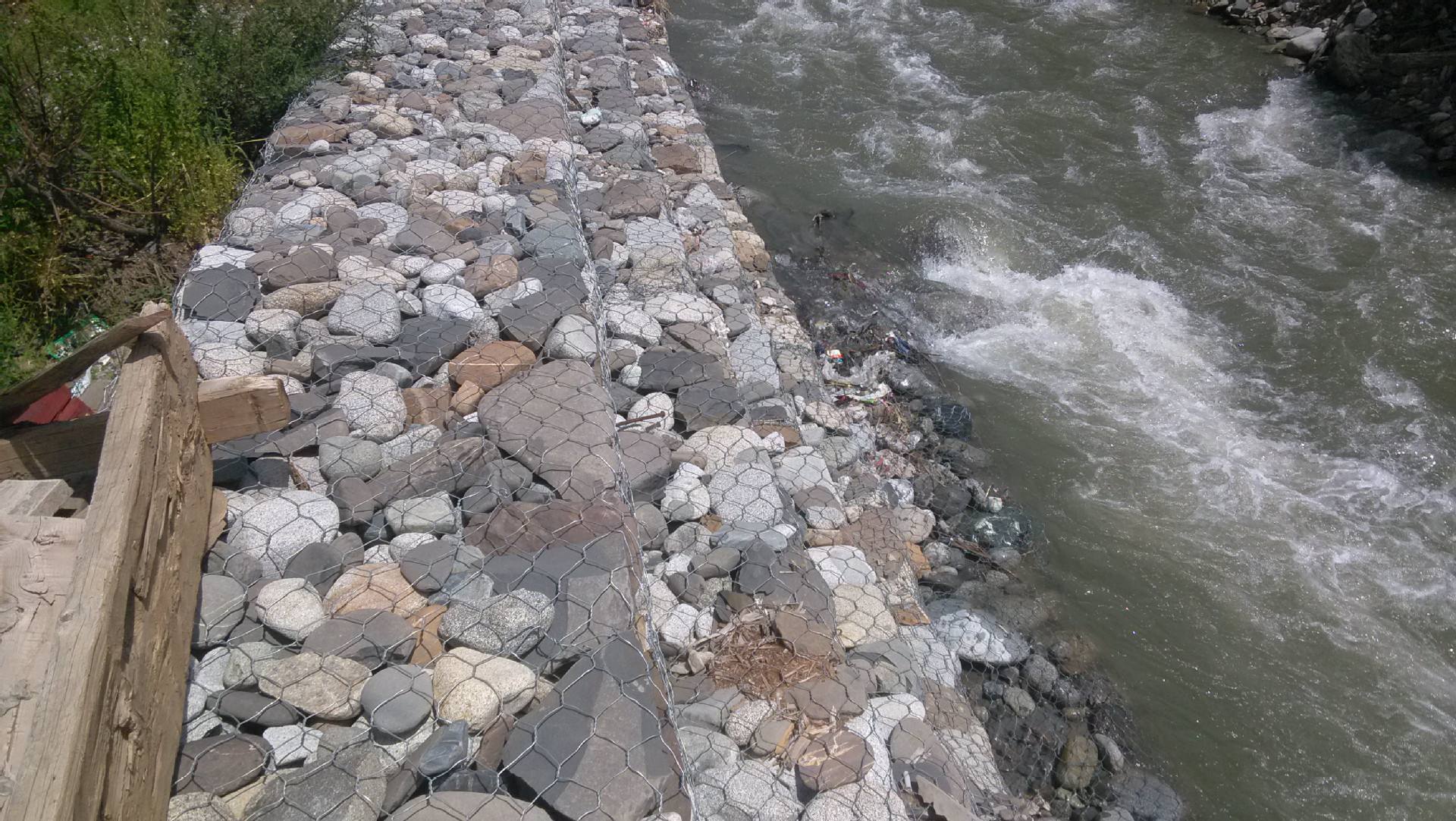 格賓網(wǎng)、雷諾護(hù)墊防護(hù)體的施工,可分為以下5個(gè)步驟:1、對(duì)網(wǎng)箱及填充石料規(guī)格、質(zhì)量進(jìn)行檢驗(yàn),整理坡面,使坡面基本平整。 2、將片狀的格網(wǎng)按照規(guī)定的步驟和要求,采用雙鉸鏈接,綁扎成箱。一般形成由多個(gè)網(wǎng)箱構(gòu)成的“網(wǎng)箱組”,然后將網(wǎng)箱組鋪放在平整好的坡面或開(kāi)挖好的基坑中 3、將石料充填到網(wǎng)箱中,一般每層厚度控制在30cm左右,并適當(dāng)搗實(shí),表面疊放平整。如箱籠厚度在30cm以下的,可一次性進(jìn)行填料。 4、復(fù)上網(wǎng)蓋,將網(wǎng)蓋與網(wǎng)身接觸的框線(xiàn)按規(guī)定進(jìn)行綁扎。 5、在填充石料縫隙適當(dāng)拋灑泥土,播上草種。 隨著人們生態(tài)環(huán)境保護(hù)意識(shí)的逐漸提高,從工程水利走向環(huán)境水利、生態(tài)水利的治水觀念已被廣泛接受,為實(shí)現(xiàn)人與自然的和諧共處,格賓網(wǎng)、雷諾護(hù)墊防護(hù)體不失為一種良好的防護(hù)工程措施。