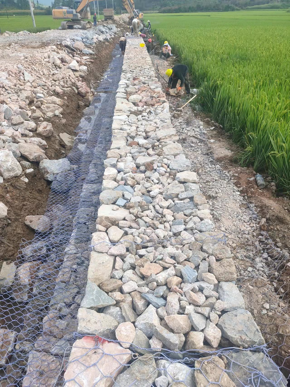 為了減輕湍急的水流沖刷河堤,在河堤的內(nèi)側(cè)或者河槽的邊緣,鋪籠石網(wǎng)箱或者籠石網(wǎng)墊,洶涌的河水直接沖擊籠石網(wǎng)箱或者籠石網(wǎng)墊,這樣保護河堤或者河槽。河水在彎曲的河道處,由于遇到涂塑石籠網(wǎng)箱或者涂塑石籠網(wǎng)墊,河水就會拐彎,順著固有的河道流淌就可以安全的引導(dǎo)河水?;\石網(wǎng)也應(yīng)用到泄洪壩和導(dǎo)流壩,起到引導(dǎo)或者約束洪水的作用。
