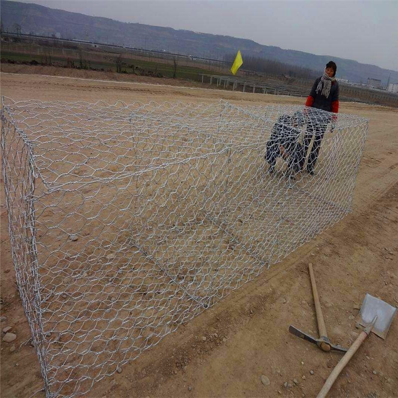格賓網(wǎng)也稱(chēng)重型六角網(wǎng)、擰花網(wǎng)、石籠網(wǎng)、三絞節(jié)機(jī)編網(wǎng)、雙絞格網(wǎng)是金屬線(xiàn)材編織的角形網(wǎng)(六角網(wǎng))制成的網(wǎng)箱,使用的金屬線(xiàn)徑是根據(jù)六角形的大小而不同.如果是金屬鍍層的金屬線(xiàn)六角形,則使用線(xiàn)徑為2.0mm到4.0mm的金屬線(xiàn),如果是PVC包覆的金屬線(xiàn)編織的六角網(wǎng),則使用外徑為3.0mm到4.5mm的PVC(金屬)線(xiàn).外框邊緣的線(xiàn)則使用比六角網(wǎng)線(xiàn)粗一號(hào)的線(xiàn)。格賓網(wǎng)是由經(jīng)表面防蝕處理的低碳鋼絲用機(jī)械編織的雙鉸六角形柔性金屬網(wǎng)經(jīng)剪裁,編邊和組合后制成的各種規(guī)格的網(wǎng)籠。