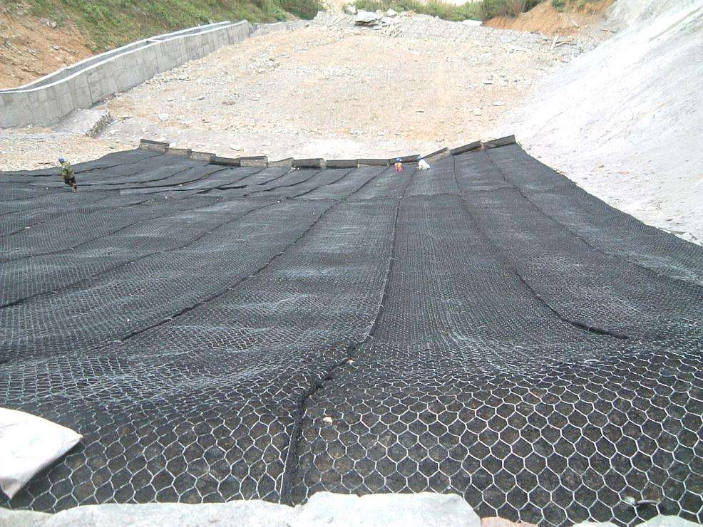 加筋麥克墊作為一種土工墊,它在具有一般土工墊優(yōu)良的抗侵蝕性能之外,還具備著比其更完美的防沖刷性能和機(jī)械張拉力,所以,它可以在防護(hù)邊坡表層被沖刷時具有很好的應(yīng)用。土工材料的本質(zhì)是聚丙烯,而混合了10%的鋁鋅合金鋼絲后,則對腐蝕產(chǎn)生了非常強(qiáng)的防范效果。因為加筋麥克墊存在孔隙,所以在結(jié)構(gòu)中進(jìn)行填土?xí)r對于誰的排出非常有利,故而在土體表面會很快降低孔隙中水對其產(chǎn)生的壓力大大地保證了土體的抗剪強(qiáng)度,也在很大程度上穩(wěn)定了整個結(jié)構(gòu)。