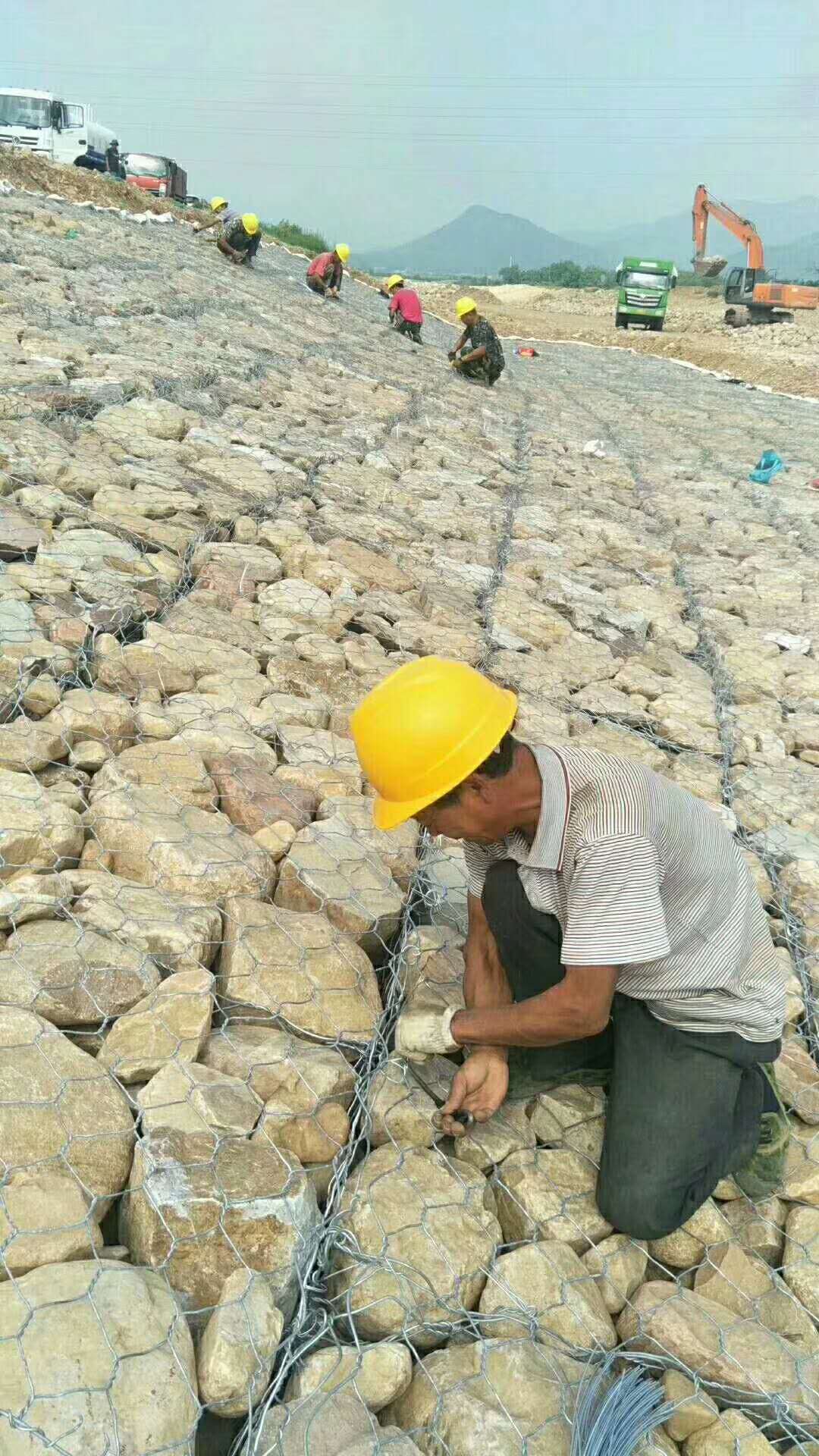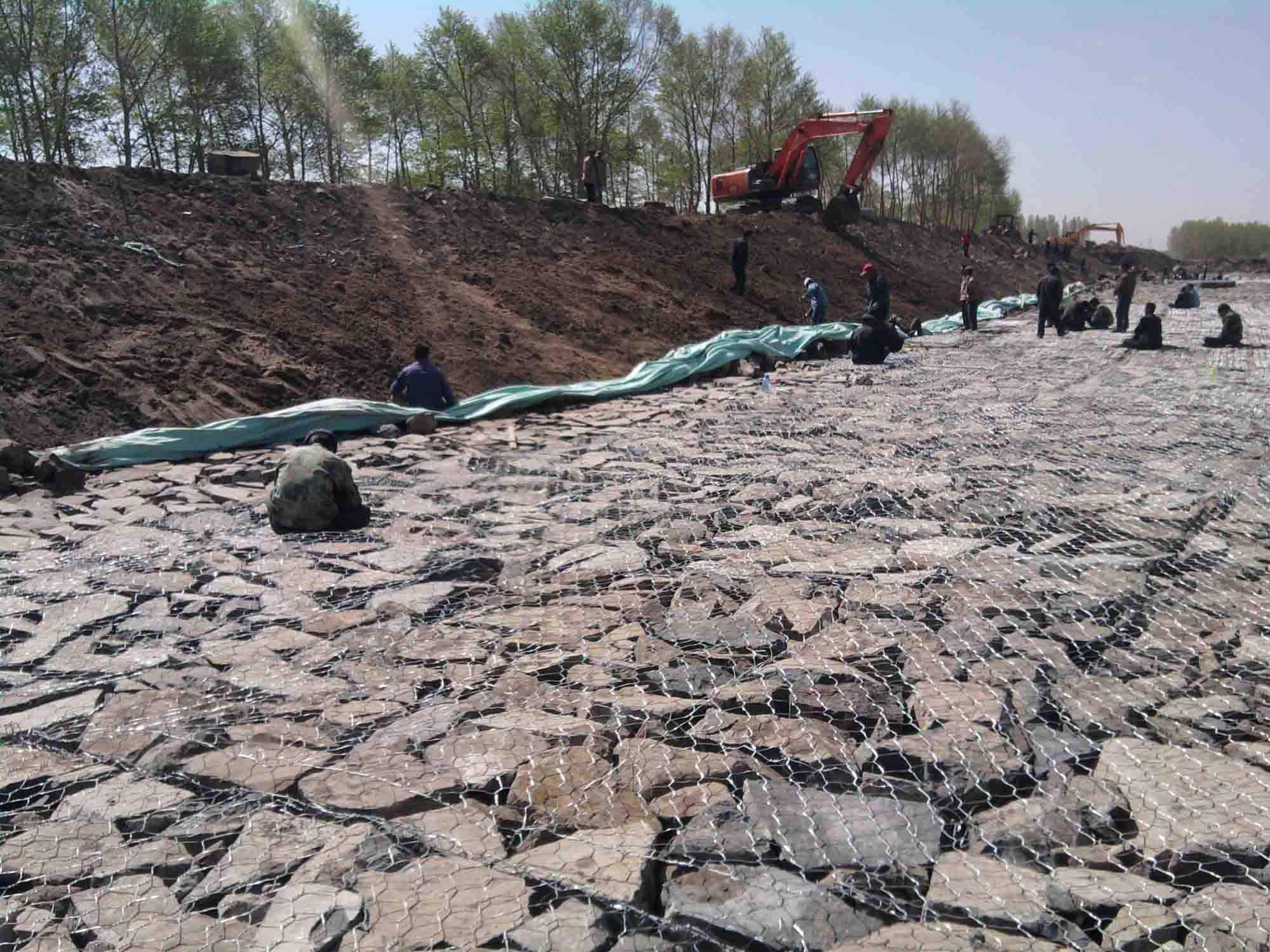 3)高上鋅絲:高熱鍍鋅處理的低碳鋼絲上鋅量均能達到245g以上,防腐、防銹性能極強,可抵御雨水及河水的長時間沖刷與浸泡,廣泛用于水利各大水利項目工程的建設。