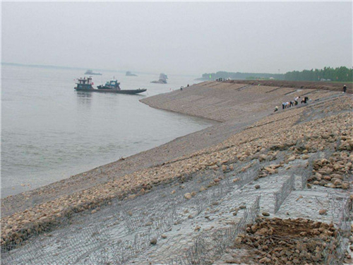 雷諾護(hù)墊是指由機(jī)編雙絞合六邊形金屬網(wǎng)面構(gòu)成的厚度遠(yuǎn)小于長(zhǎng)度和寬度的墊形工程構(gòu)件,其中裝入塊石等填充料后連接成一體,成為主要用于水利堤防、岸坡、海曼等的防 沖刷結(jié)構(gòu),具有柔性、對(duì)地基適應(yīng)性的優(yōu)點(diǎn)。