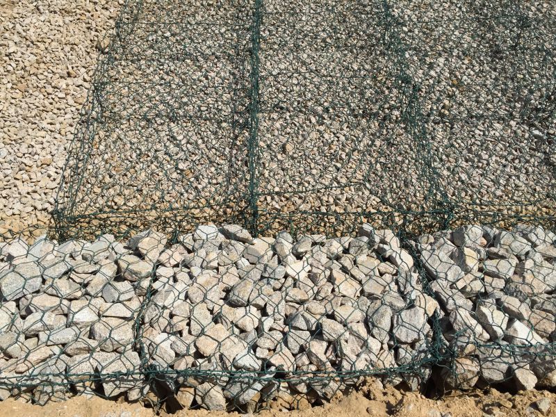 綠格網(wǎng)又稱“格賓網(wǎng)”、“石籠網(wǎng)”,由各種網(wǎng)孔規(guī)格的綠格網(wǎng)片按照ASTMA975-97規(guī)范組裝而成,工程現(xiàn)成填充石料組裝形成柔性的、透水的、整體的支擋結(jié)構,常用于生態(tài)防護工程。該結(jié)構采用高熱鍍鋅鋼絲或者10%鋅鋁合金鋼絲經(jīng)過雙線絞合編織而成的,其雙線絞合部分的長度不能低于45mm,以保證絞合部分的防腐性能不被破壞。因為環(huán)境比較惡劣,污染比較嚴重,所以鋼絲的表面涂塑(包PVC或者PE)增強鋼絲的抗腐蝕性能。