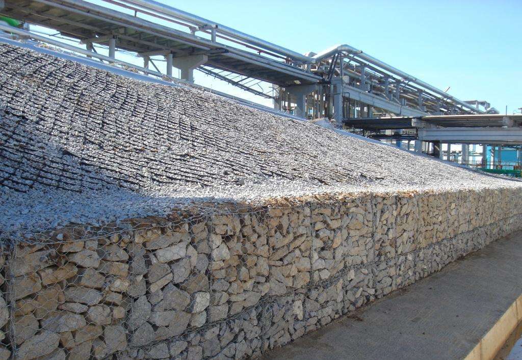 1)格賓網(wǎng)面是由鍍高爾凡等防腐處理的低碳鋼絲經(jīng)機(jī)器編制成的六邊形雙絞合網(wǎng),使用壽命大于50年。