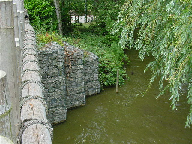河堤,這樣減輕對河堤的損害。 在網(wǎng)箱上面,鋪撒一層土,可以生長草;自然也會沉降塵土,自然生長雜草等。 石籠網(wǎng)也可以用于引導(dǎo)河流水,河流一般會順著固有的河槽流動,河道可能有自然形成的彎曲的河道,如果發(fā)生洪水,水量巨大,水流湍急,水流會在慣性下,趨于直向流動,會猛烈地沖擊原來的河槽和堤壩,有可能使河流改道,那樣將造成巨大的災(zāi)難。